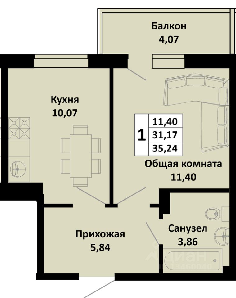 1-комнатная квартира в новом жилом комплексе комфорт-класса "Южные соседи" в тихом зелёном районе Краснодара, мкр. Молодёжный (ул. Северная, 42).