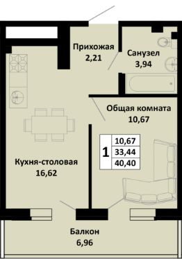 1-комнатная квартира в новом жилом комплексе комфорт-класса "Южные соседи" в тихом зелёном районе Краснодара, мкр. Молодёжный (ул. Северная, 42).