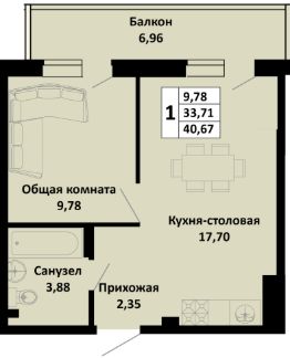 1-комнатная квартира в новом жилом комплексе комфорт-класса "Южные соседи" в тихом зелёном районе Краснодара, мкр. Молодёжный (ул. Северная, 42).