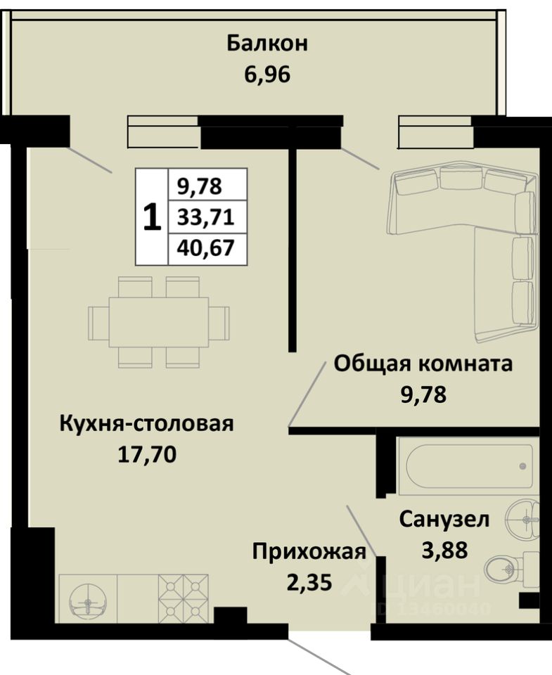 1-комнатная квартира в новом жилом комплексе комфорт-класса "Южные соседи" в тихом зелёном районе Краснодара, мкр. Молодёжный (ул. Северная, 42).