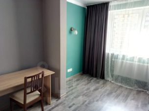 Комната зонирована. Выход на лоджию через кухню. Лоджия застекленная.