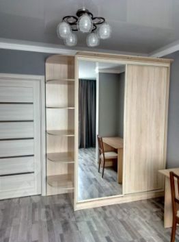 В комнате: диван- кровать, шкаф- купе, стол письменный.