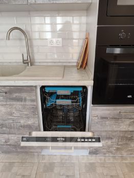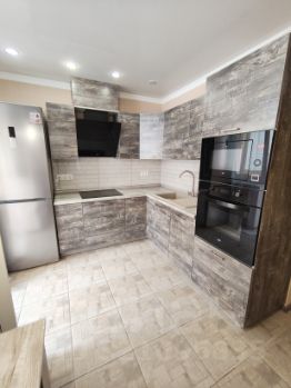 Кухня: кухонный гарнитур с встроенной духовкой,микроволновкой, посудомоечной машиной. Холодильник Bosch.