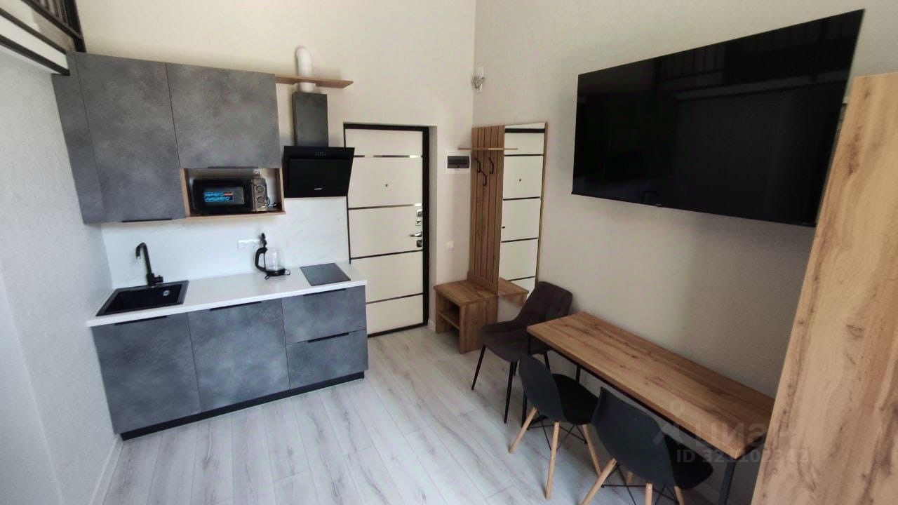 Продаются стильные двухуровневые апартаменты-студия в живописном селе Агой, в гостиничном комплексе "Радуга". Общая площадь составляет 21,3 кв. м, из которых 11 кв. м — жилая зона и 9 кв. м — просторная кухня. Апартаменты расположены на 2 этаже 7-этажного дома с пассажирским лифтом. Высота потолков — 3,5 метра, что придает помещению ощущение простора и легкости.