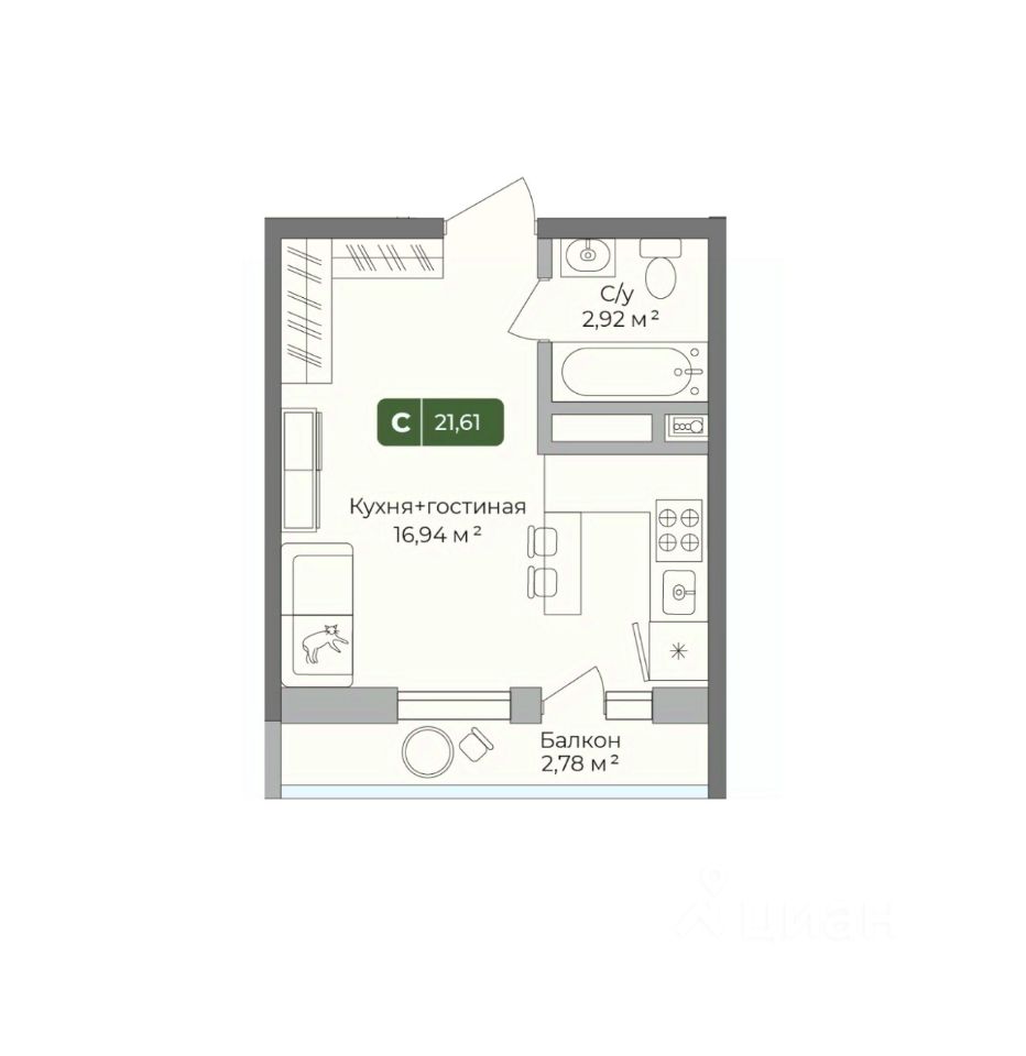 Продается студия, 21,61 м²