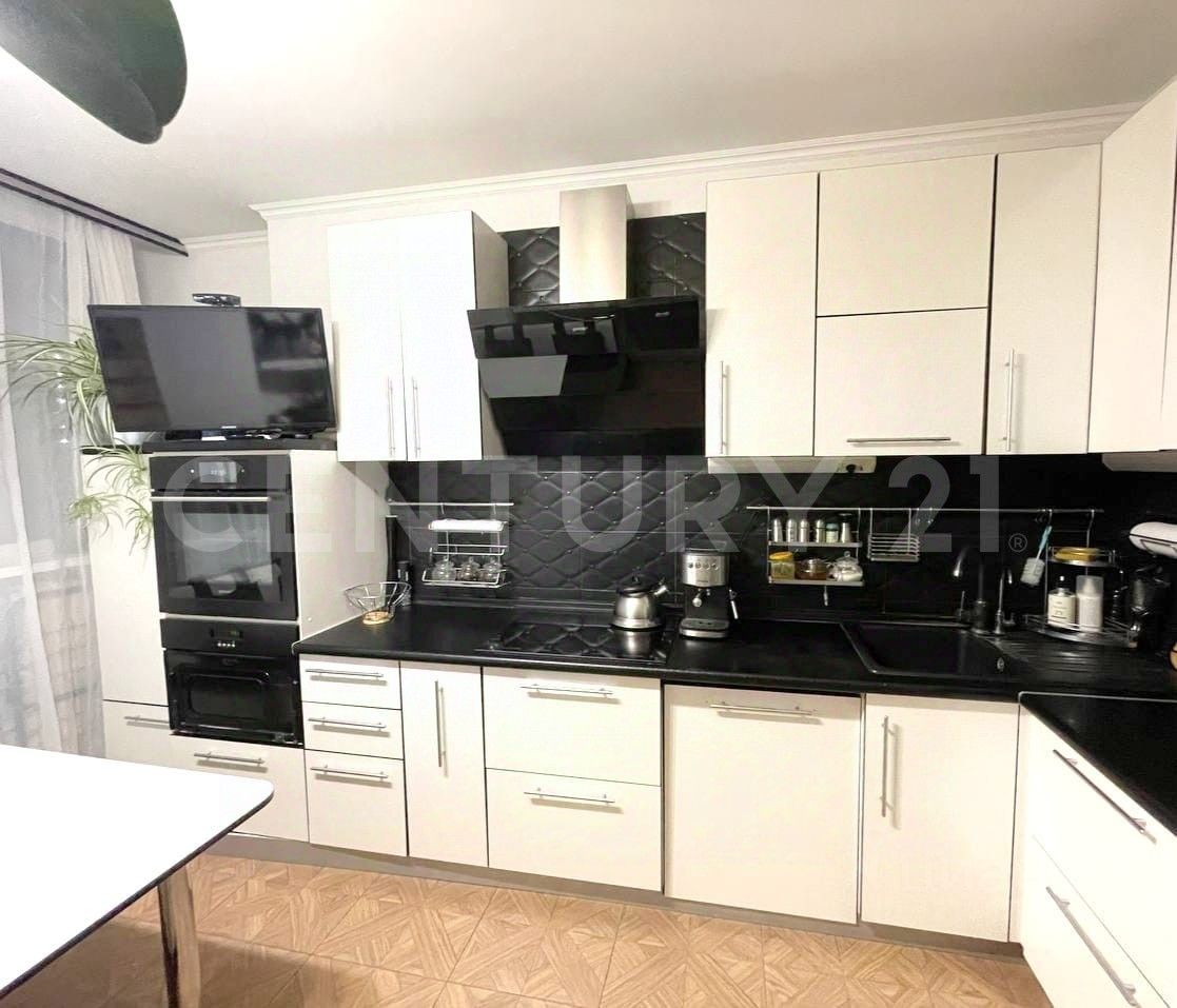 - Кухня 12 кв.м. Современная, просторная, функциональная. Все коммуникации новые, кухня рассчитана под электроплиту. Окно на кухне во всю длину торцевой стены.