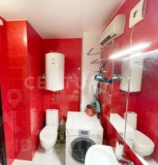 - Санузел совмещенный, но просторный, полноценная ванна, легко размещается крупногабаритная стиральная машинка, глубиной 64 см. Сантехника АМ&РМ. Все трубы спрятаны в стенах, под плиткой. На период отключения горячей воды проведены, встроенные в стену, коммуникации для подключение водонагревателя.