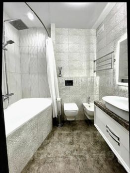 Квартира находится на 13 этаже . Из окон открываются потрясающие виды.Планировка: общ. S=86 м, 2 спальни и кухня-гостиная, 2 с/у, просторная витражная лоджия .