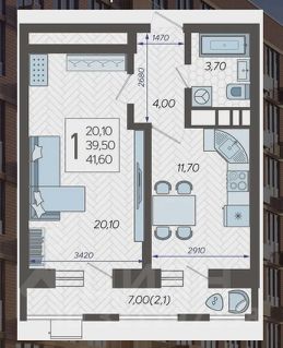 Продаётся квартира 43 м² в ЖК Небо — 9 этаж с большой ленточной лоджией