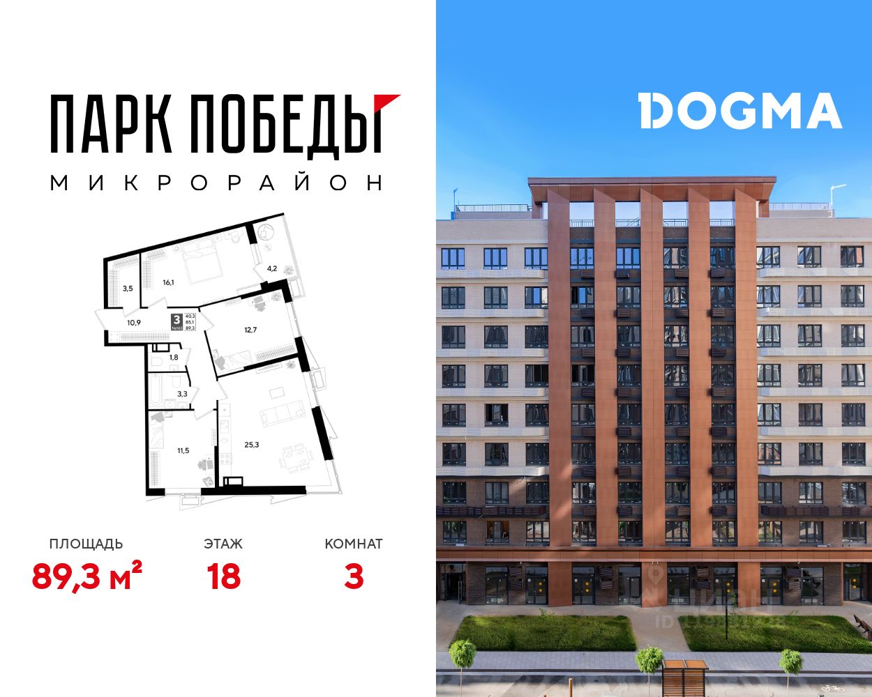 Срок сдачи: 2 кв. 2026, общей площадью 89.3 кв.м., на 18 этаже.