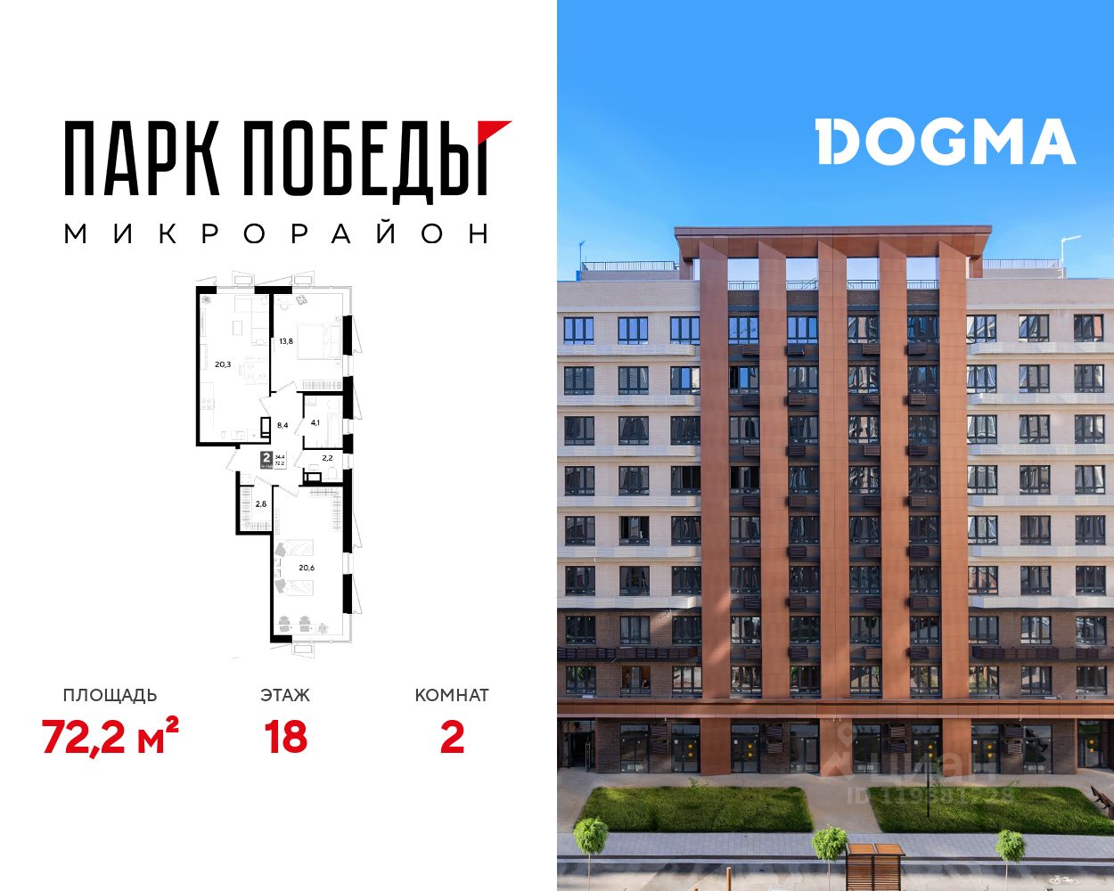 Срок сдачи: 2 кв. 2026, общей площадью 72.2 кв.м., на 18 этаже.