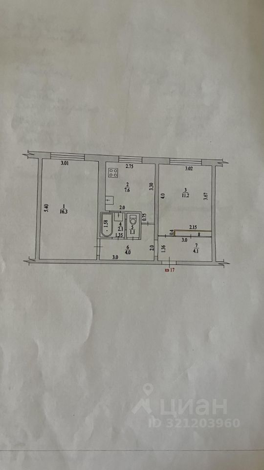 Комнаты изолированные: 16,3 и 11,2 м²