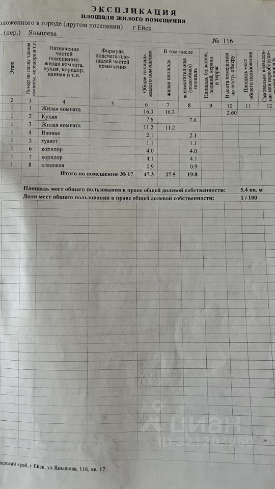 Сейчас она на стадии вывоза вещей и расхламления, поэтому фото внутри не выкладываем — прикреплены техплан и экспликация.