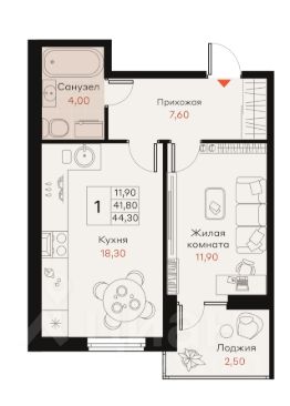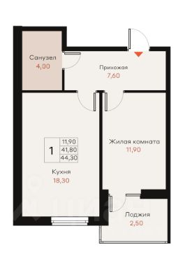 Общая площадь44,3 м²
