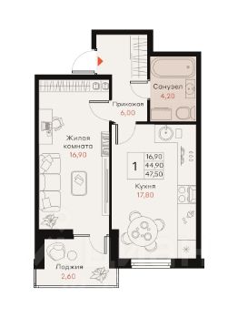 Общая площадь47,5 м²
