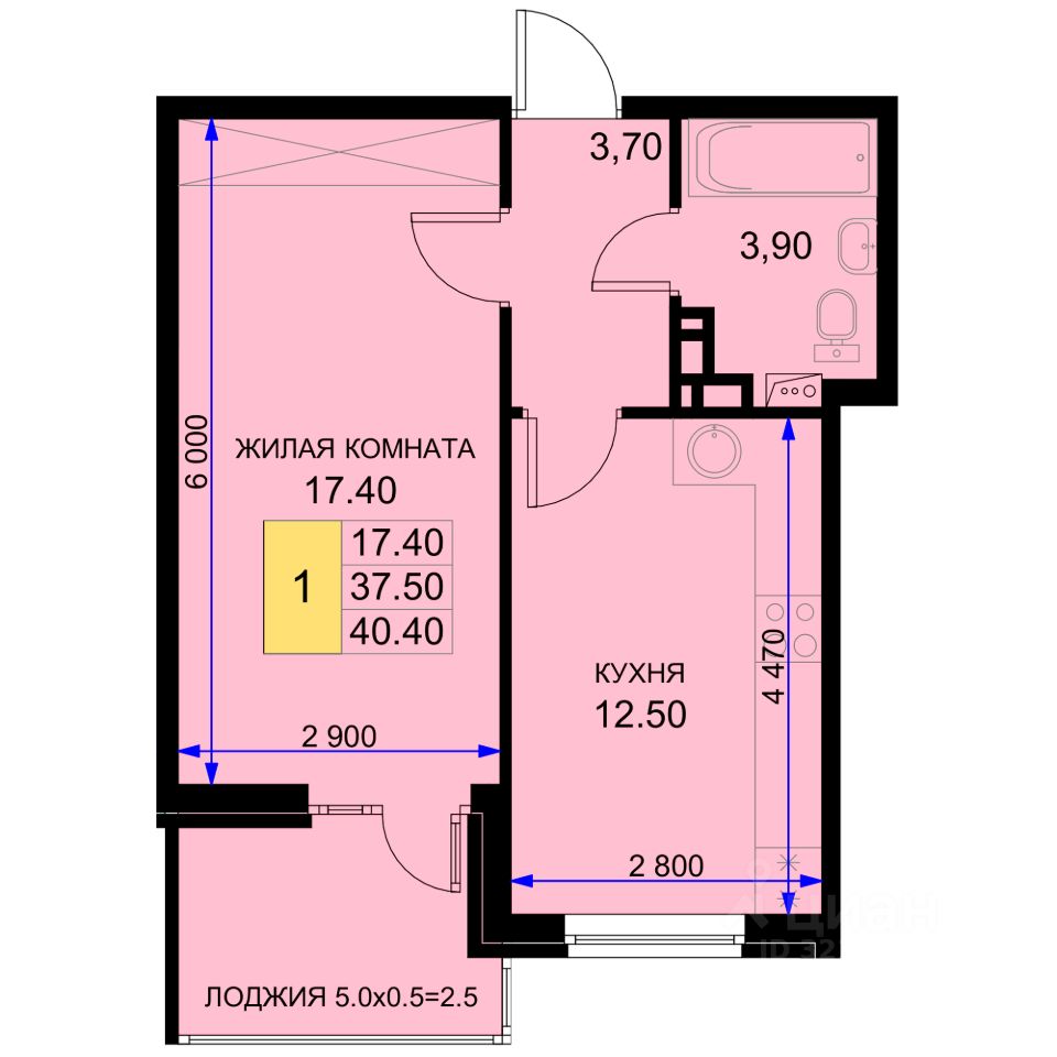 Общая площадь40 м²