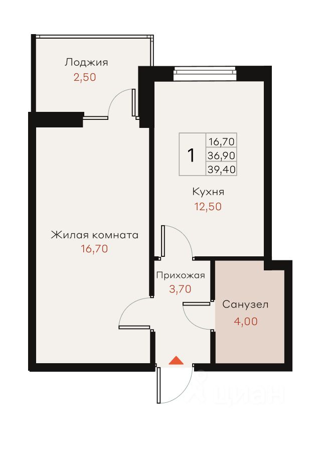 Общая площадь39,4 м²