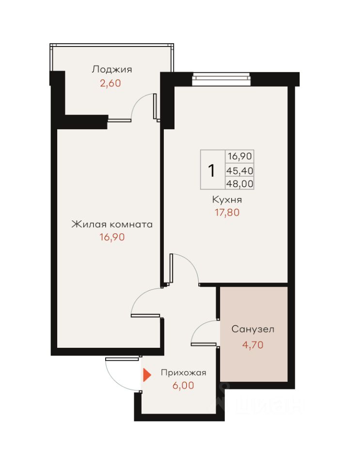 Общая площадь48 м²