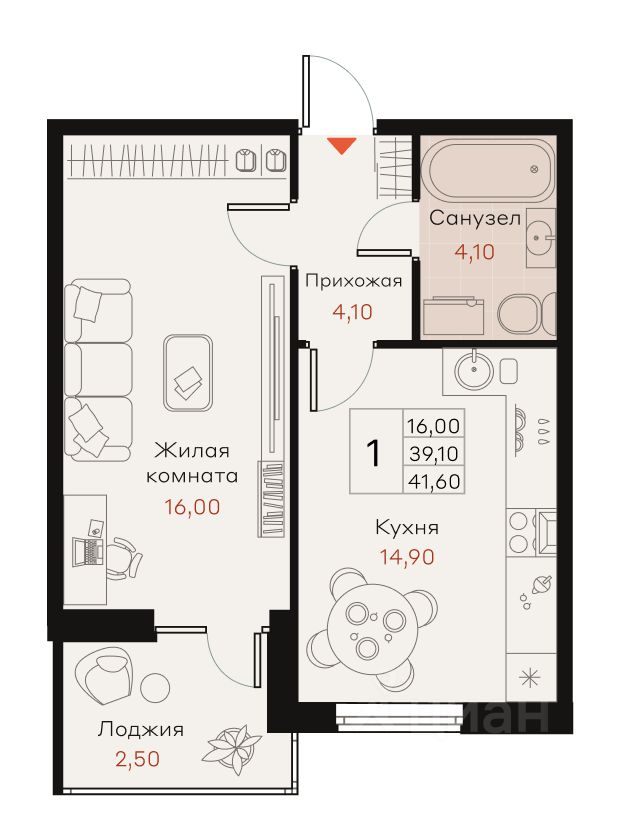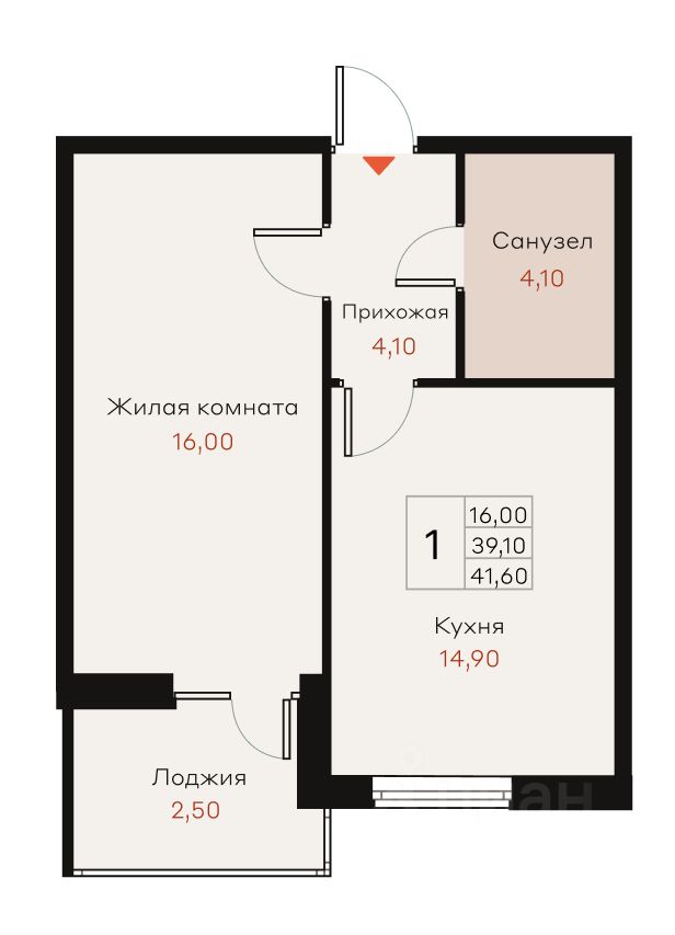 Общая площадь41,6 м²