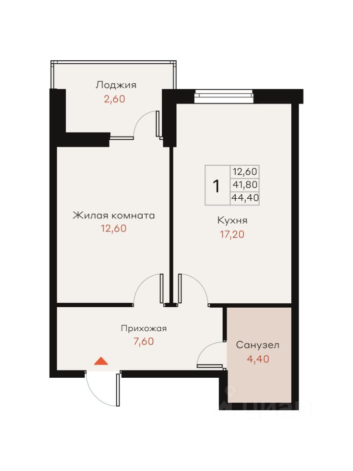 Жилая площадь12,6 м²