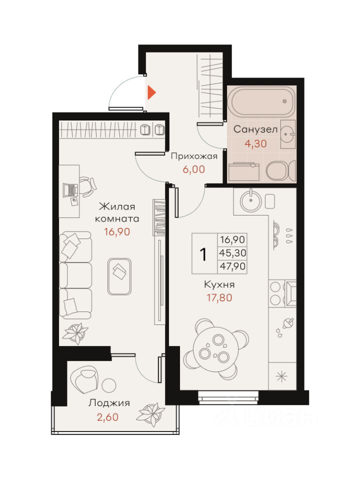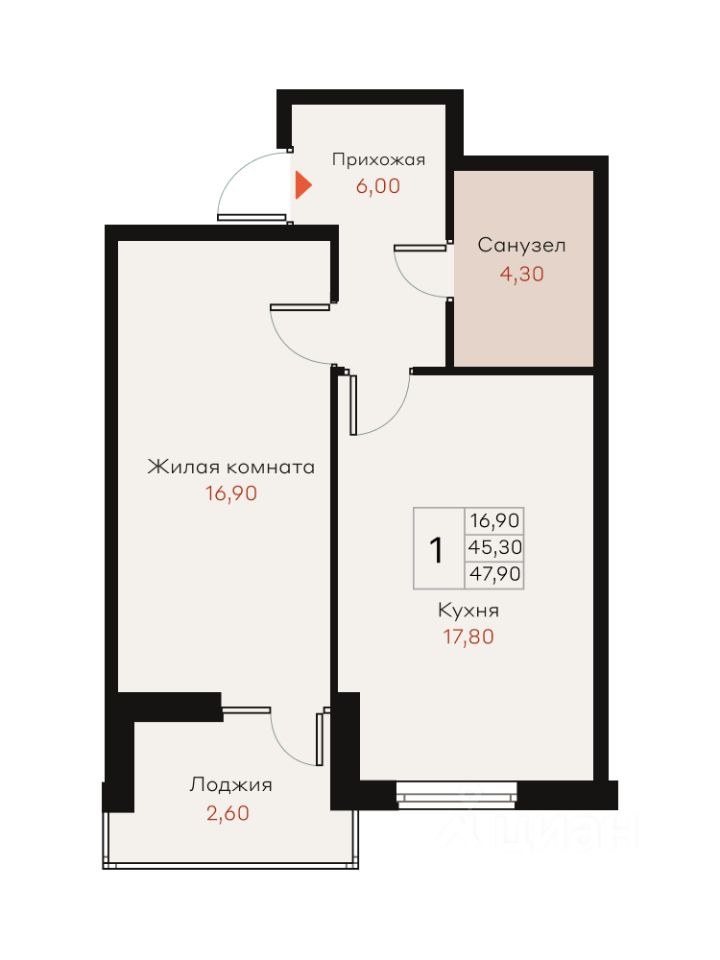 Жилая площадь16,9 м²