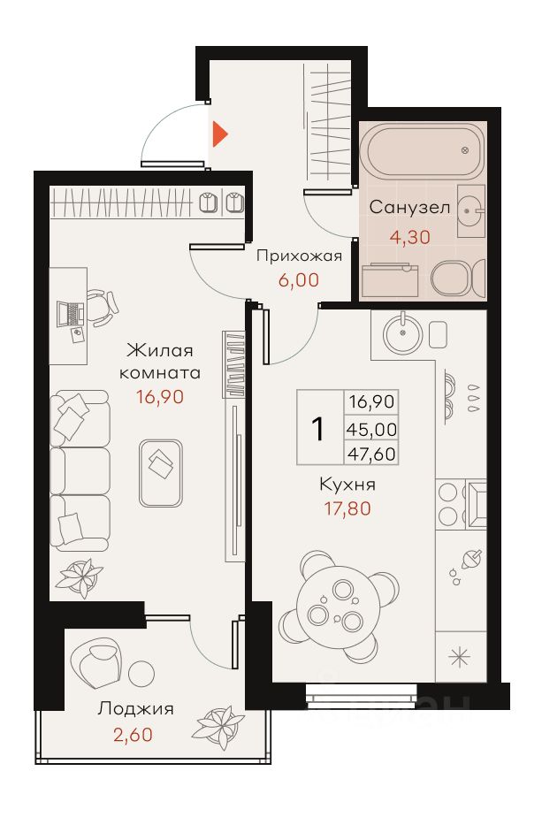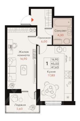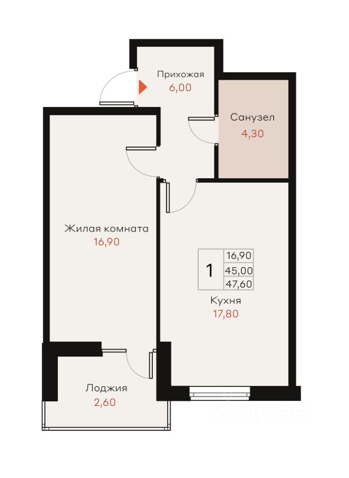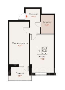 Общая площадь47,6 м²