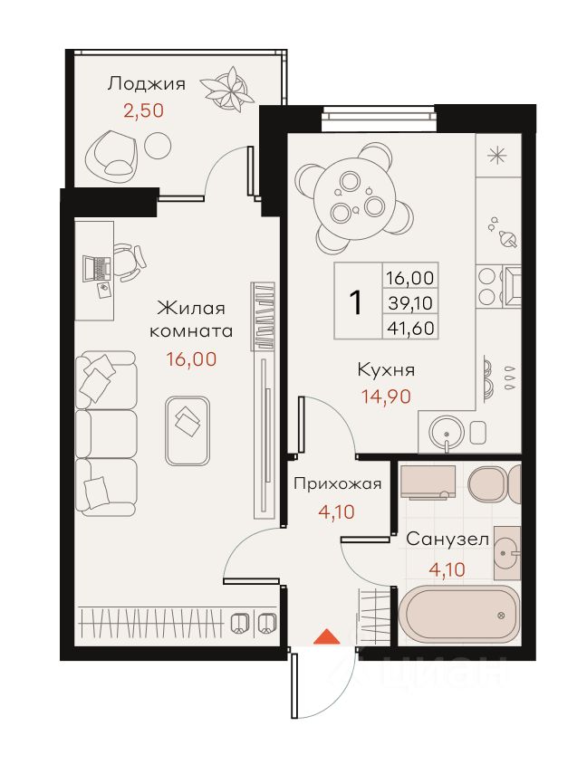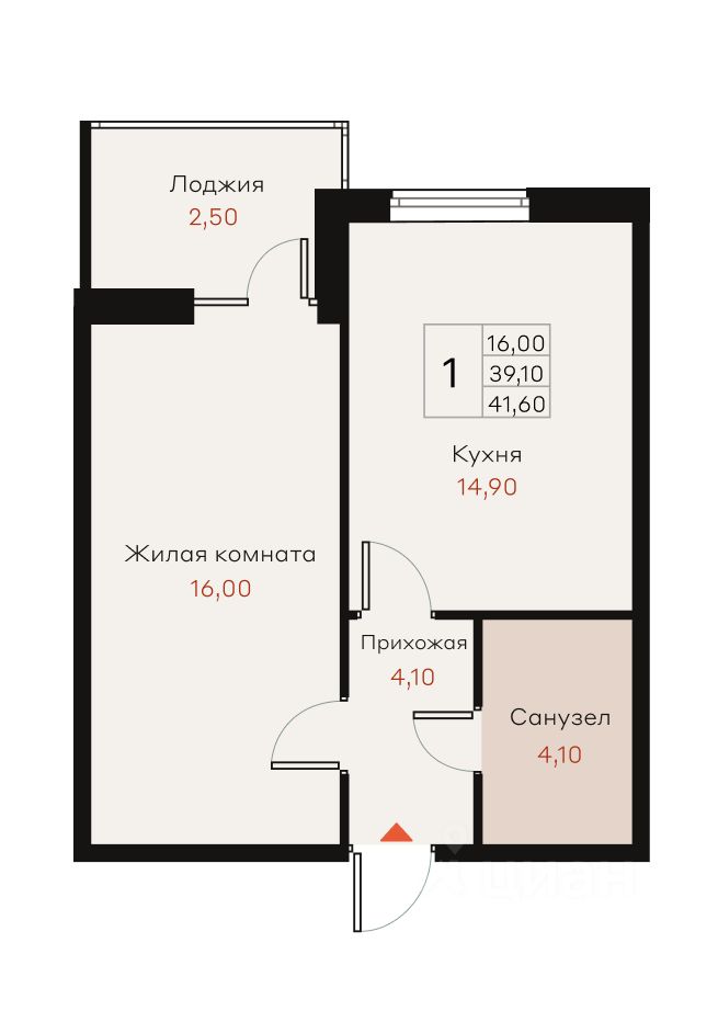 Общая площадь41,6 м²
