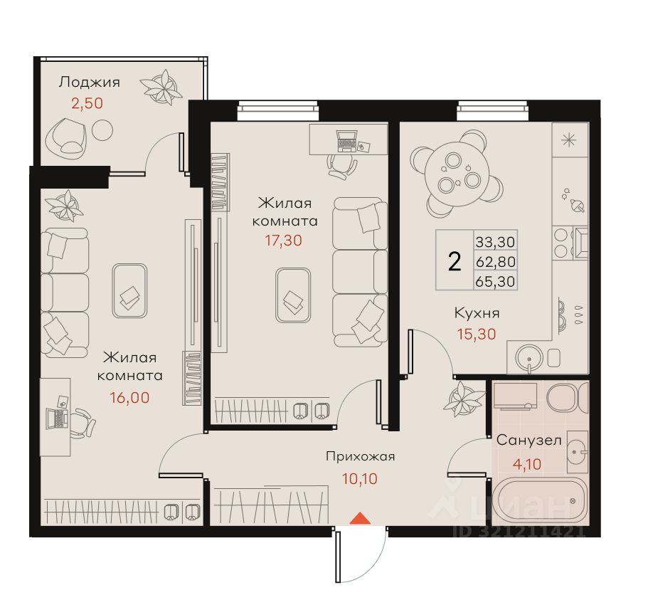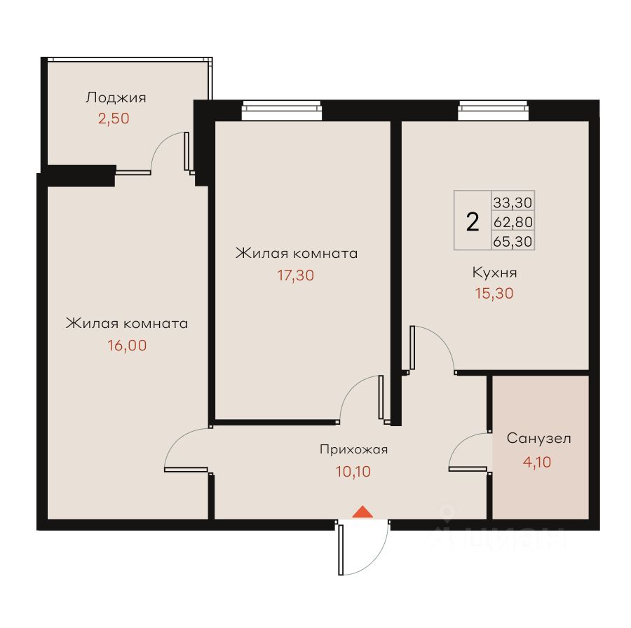 Общая площадь65,3 м²
