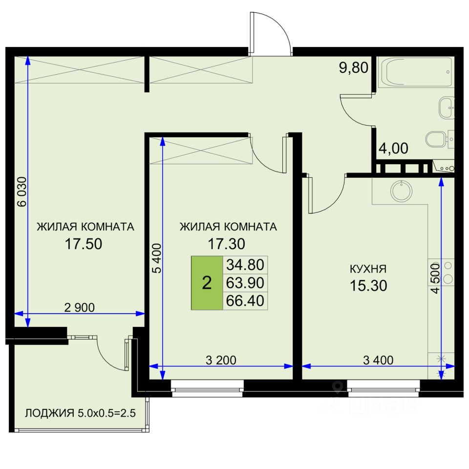 Общая площадь66,4 м²