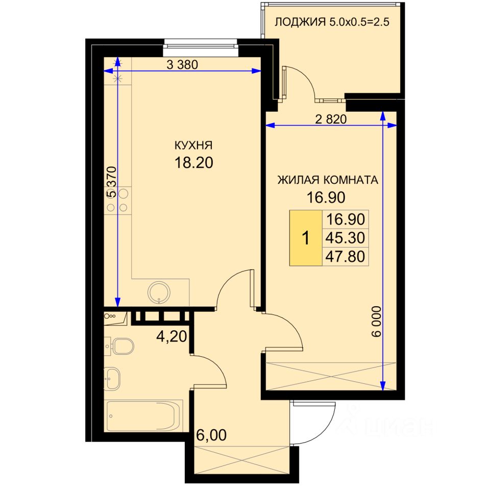 Общая площадь47,8 м²