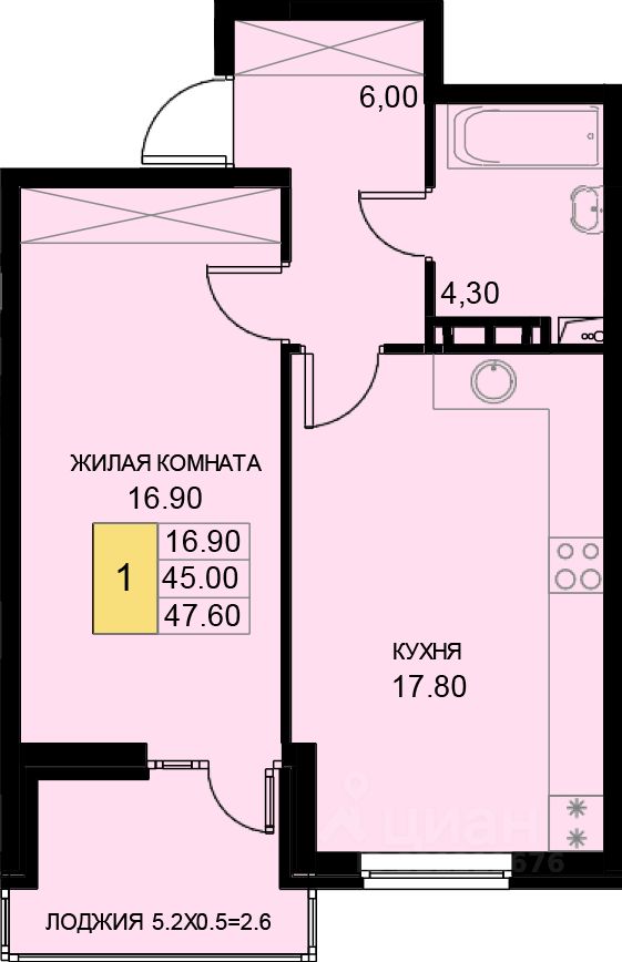 Общая площадь47,6 м²