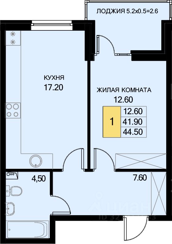 Общая площадь44,5 м²