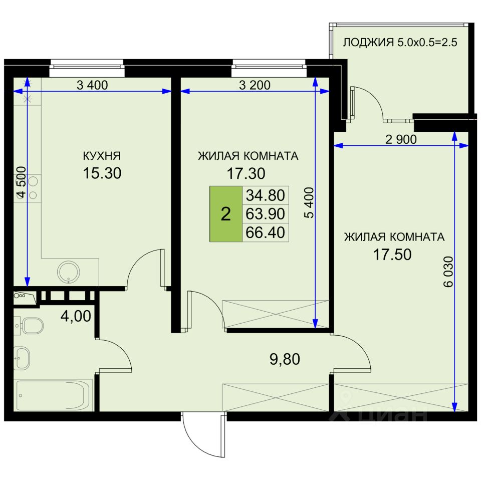 Общая площадь66,4 м²