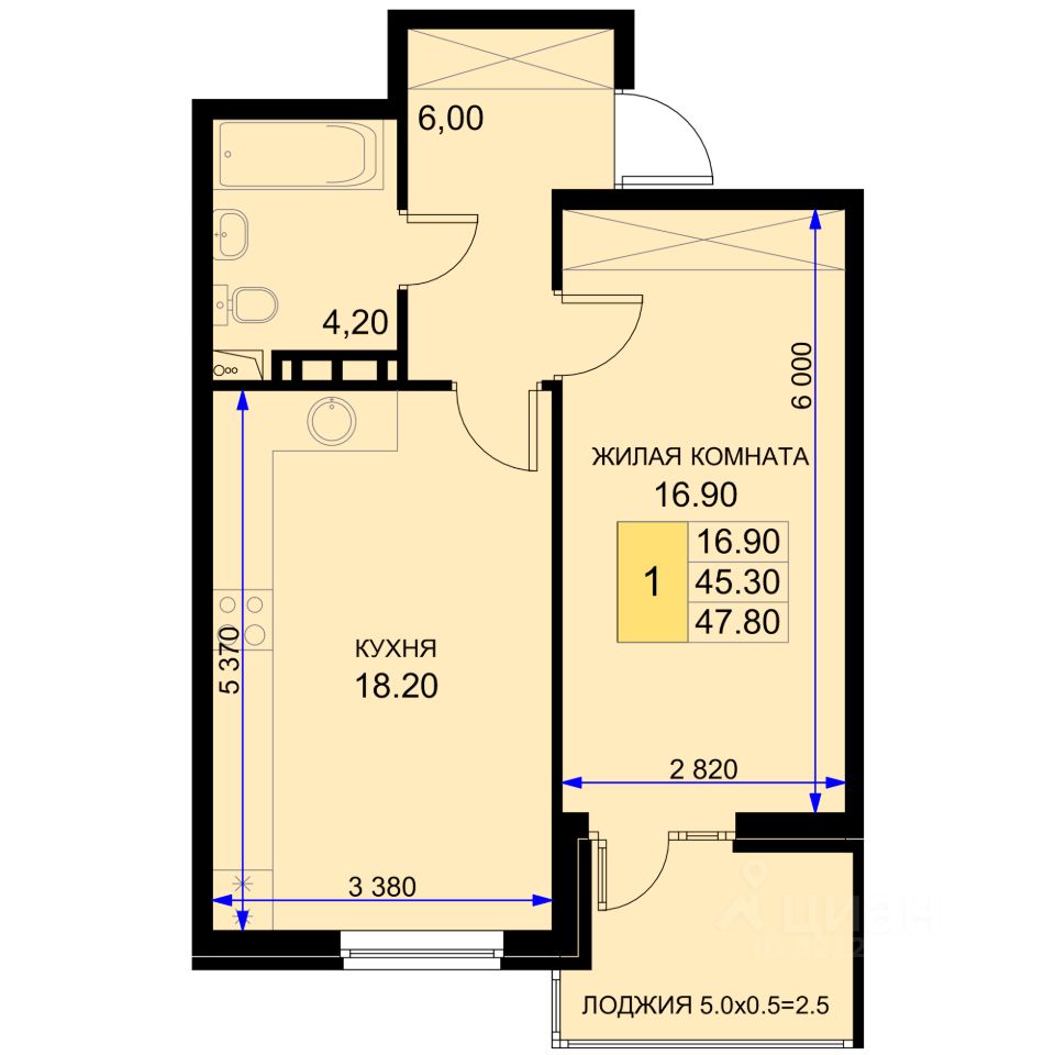 Общая площадь47,8 м²