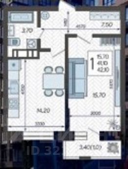 Квартира находится на среднем этаже 12-этажного дома, построенного в 2024 году. Общая площадь составляет 42.1 кв. м, из которых 15.7 кв. м занимает жилая комната, а кухня просторна и занимает 14.2 кв. м. Высота потолков — 2.7 метра. Окна выходят во двор, что обеспечивает тишину и уют.