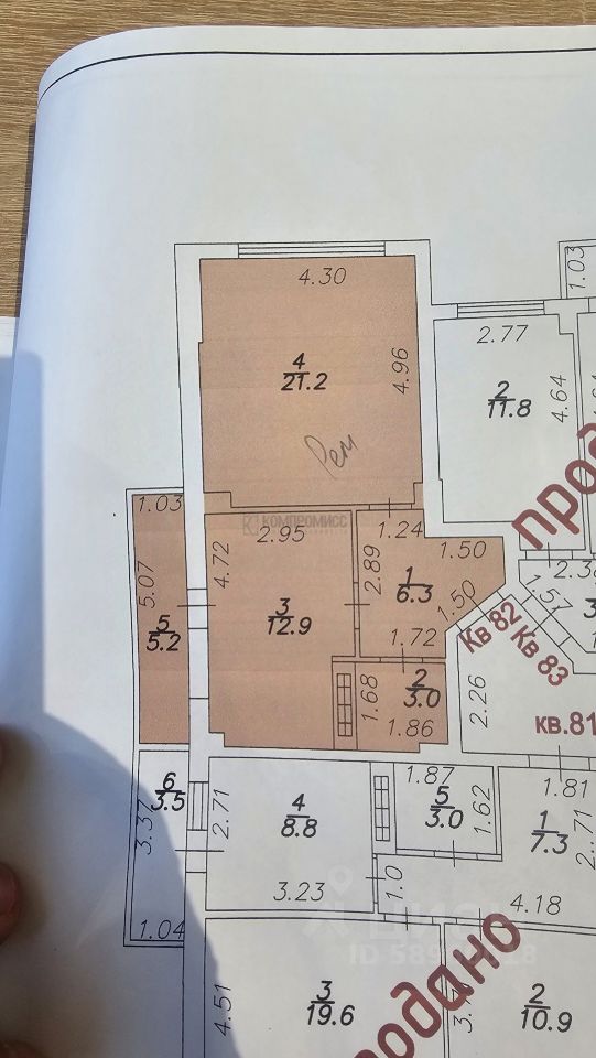 Общая площадь квартиры - 48,6 кв. м, жилая - 21,2 кв.м., кухня - 12,9 кв.м., балкон 5,2 кв.м.