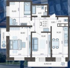 Общая площадь квартиры составляет 80 кв. м, жилая — 40 кв. м, а кухня впечатляет своими 14,3 кв. м. Квартира расположена на среднем этаже 12-этажного дома, построенного в 2024 году. Это монолитно-кирпичное здание с высокими потолками в 2.7 метра и окнами, выходящими во двор, что гарантирует тишину и комфорт.