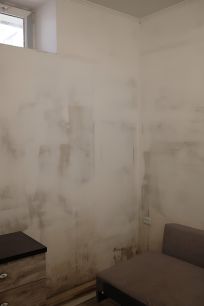 Стены обложены гипсокартоном и отшукатурены, но часть гипсокартона нужно менять.