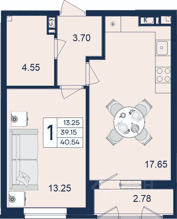 1 комнатная квартира с ремонтом 40.54 м², на 4 этаже в жилом комплексе "Дом 101".