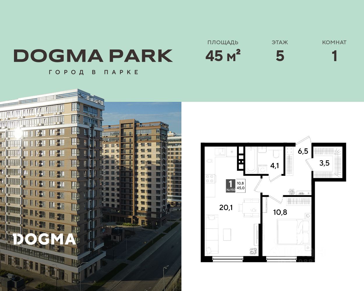 В продаже 1-комнатная квартира от застройщика! Мкр. "DOGMA PARK" г. Краснодар, Литер 34 Срок сдачи: 4 кв. 2027, общей площадью 45 кв.м., на 5 этаже.