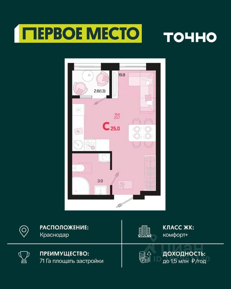 Жилой район "Первое место"- один из самых масштабных проектов в России. На территории 71 га 18 кварталов, 31 дом переменной этажности от 8 до 18 этажей, собственный парк 9 га, храмовый комплекс, пешеходный бульвар "Круг семьи", детские и спортивные площадки, мангальные зоны и различные локации для отдыха. В шаговой доступности действующие муниципальные образовательные учреждения: школа на 1 100 мест и детский сад на 250 мест. Помимо этого, в жилом районе "Первое место" построятся школа на 1700 мест с крытым 25-метровым бассейном и 5 детских садов на 1 490 мест. На первых этажах многоуровневых парковок "паркхабов" разместится более 61 тыс м2 коммерческих помещений. Жителям будут доступны собственный фитнес-центр, кафе, рестораны и магазины. В каждом подъезде предусмотрены дизайнерские холлы в стиле лобби отелей, консьерж-сервис, лапомойки, отдельные колясочные и велосипедные. Также в домах будут просторные кладовые помещения и комнаты для хранения почты с почтоматами для получения посылок из маркетплейсов.