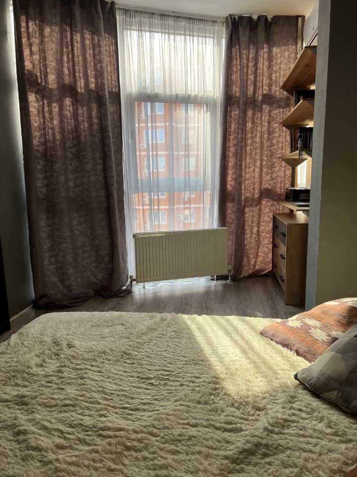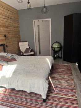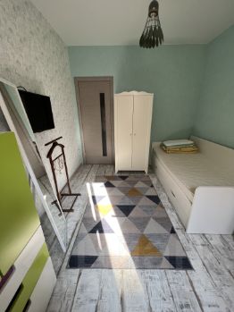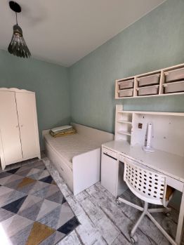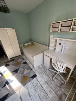 Вторая спальная комната - детская, в спокойных тонах (обои не раскрашены и не подраны, всё в хорошем состоянии).