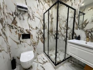 Шикарный ремонт из качественных материалов, на полу паркет, дизайнерское освещение, дорогостоящая сантехника, добротная кухня, теплый пол в ванной, современный полотенцесушитель и бойлер различными режимами. Установлена кнопка на выключение мастер-выключатель, который одним движением выключает свет по всей квартире.
