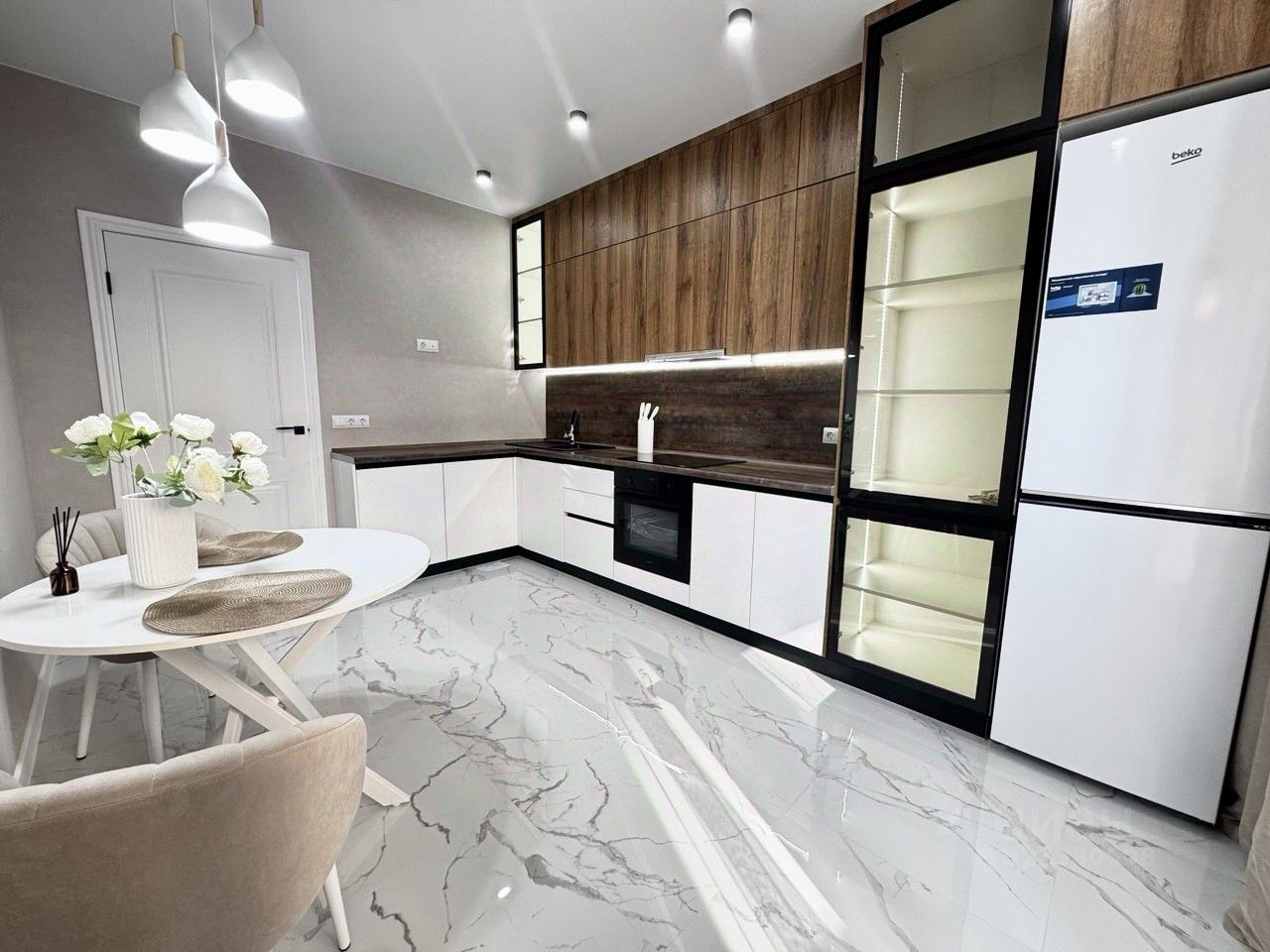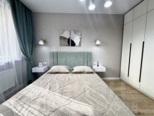 В квартире сделан качественный ремонт, ламинат, плитка керамогранит, натяжной потолок, точечное освещение, люстры, полностью вся мебель для проживания., раздельный санузел кафель. новая металическая дверь.