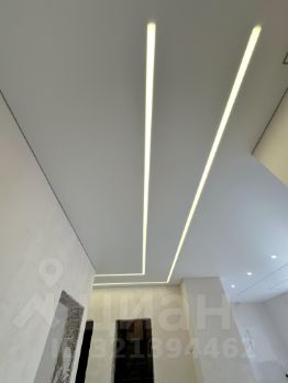 — Натяжные потолки с интегрированными световыми лентами и точечными светильниками.