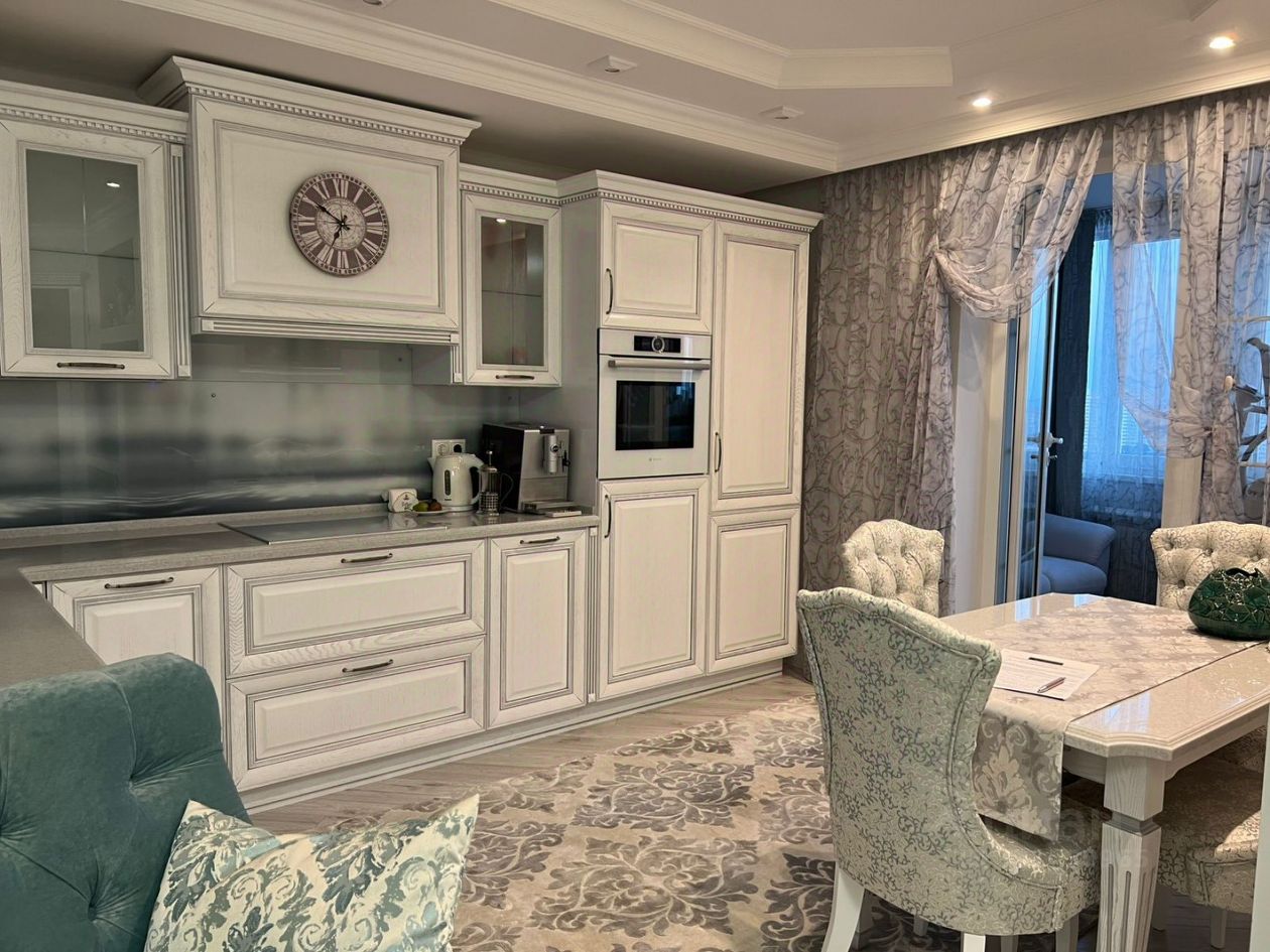 -ремонт выполнен в светлых оттенках, что визуально расширяет пространство. Множество встроенных систем хранения, обеспечивают абсолютный порядок