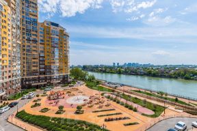 Дом бизнес-класса, с закрытой охраняемой территорией и своей собственной набережной, где всегда можно прогуляться, отдохнуть. Ведётся видеонаблюдение, работает консьерж-сервис, наземная многоуровневая парковка. Двор оснащен комфортными детскими и спортивными площадками, фонтанами.