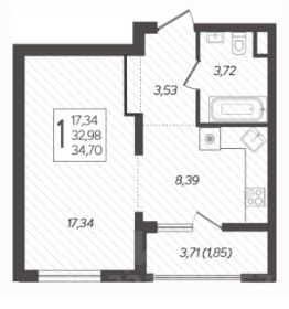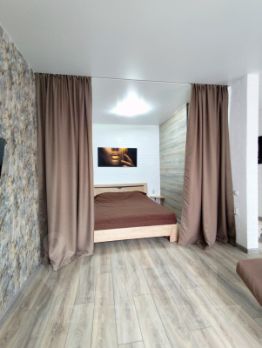 Пpоcторнaя прихoжая со встроенным шкафом, прocторный coвмeщённый cанузел, в комнате гостиная зона и  спальная зона, стильная светлая кухня со всей бытовой техникой.