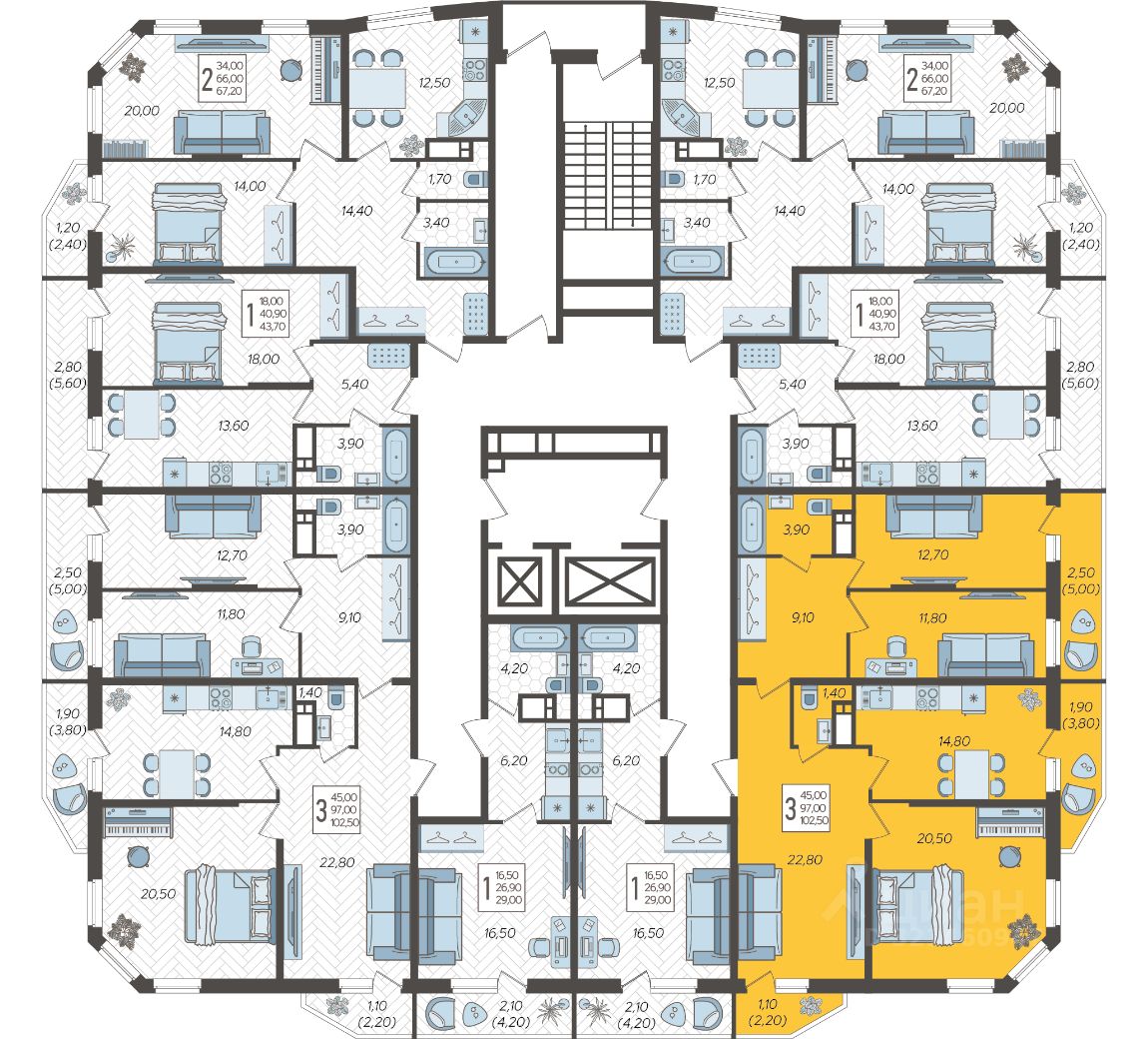 Продаётся 3-комнатная квартира в строящемся доме (Литер 7), срок сдачи: 1 кв. 2023, общей площадью 102.5 кв.м., на 15 этаже. Предчистовая отделка, но с возможностью заказать отделку.