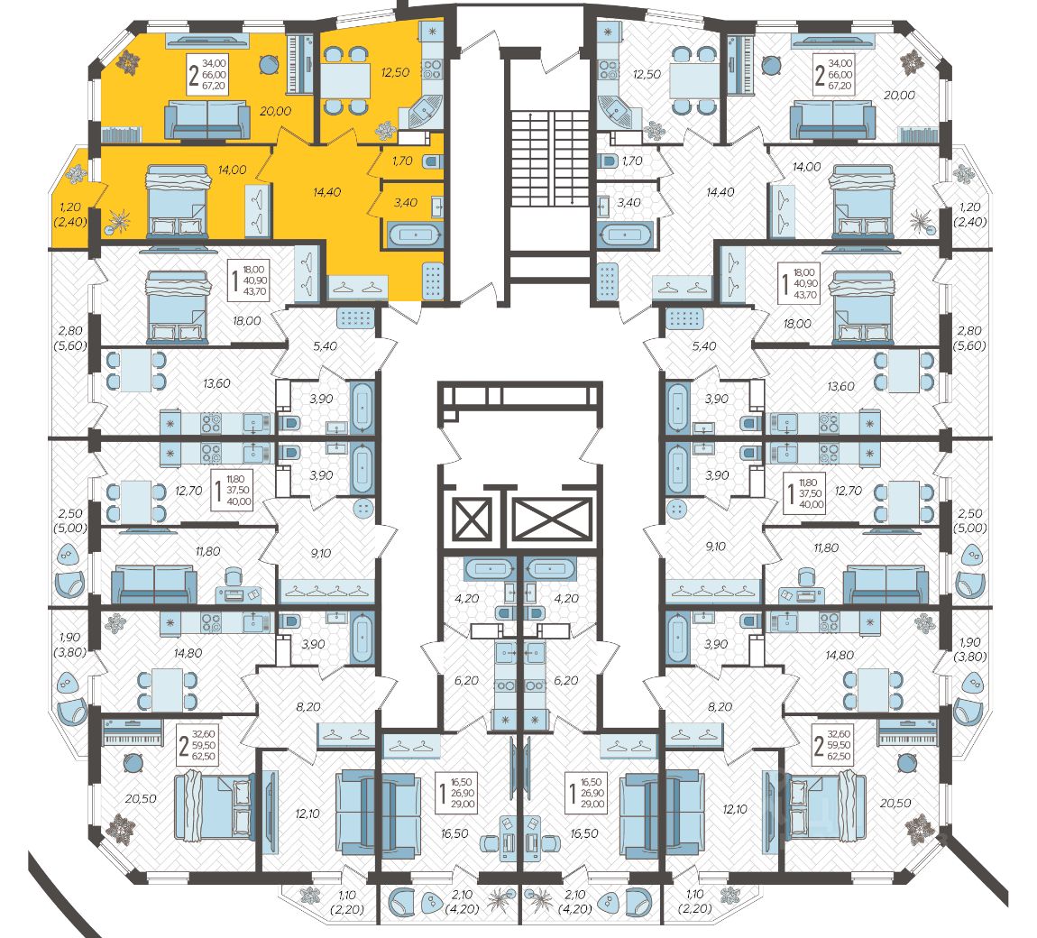 Продаётся 2-комнатная квартира в строящемся доме (Литер 6), срок сдачи: 1 кв. 2023, общей площадью 67.2 кв.м., на 3 этаже. Предчистовая отделка, но с возможностью заказать отделку.